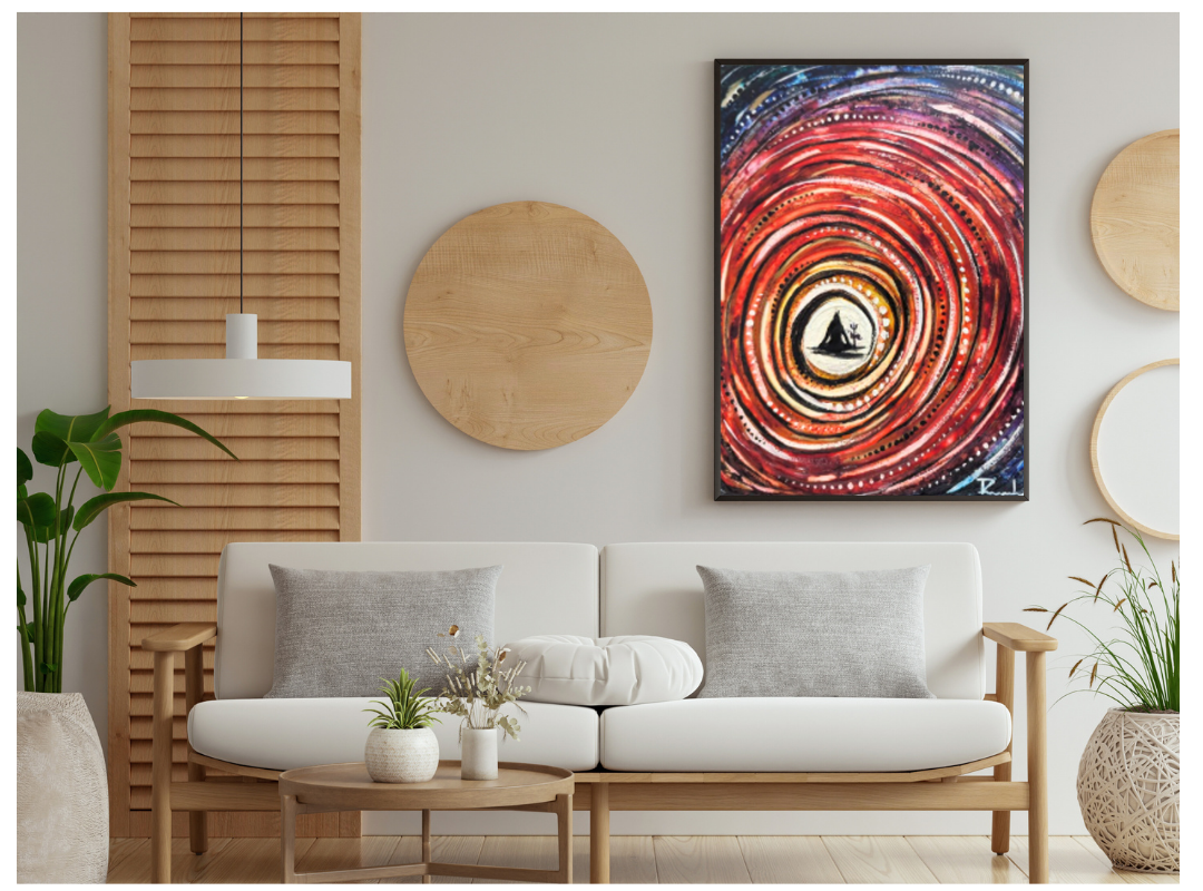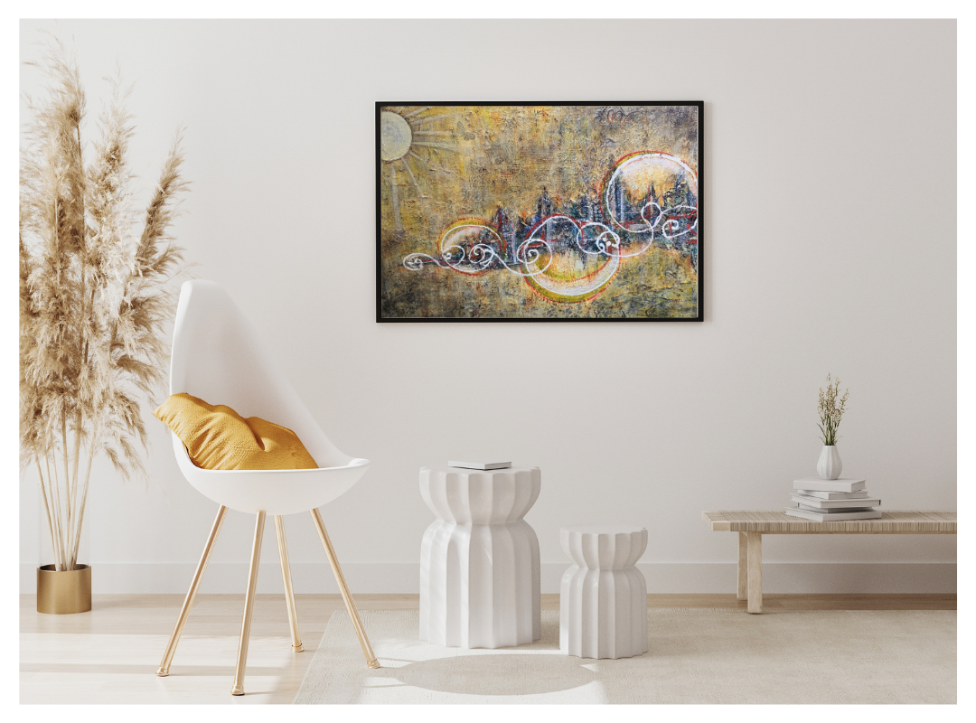 A dialogue between spirit and space — this mixed media piece transforms interiors into sanctuaries of truth and awakening
